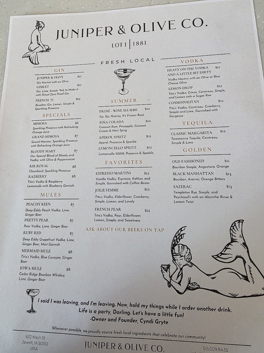 Juniper & Olive Co. Menu